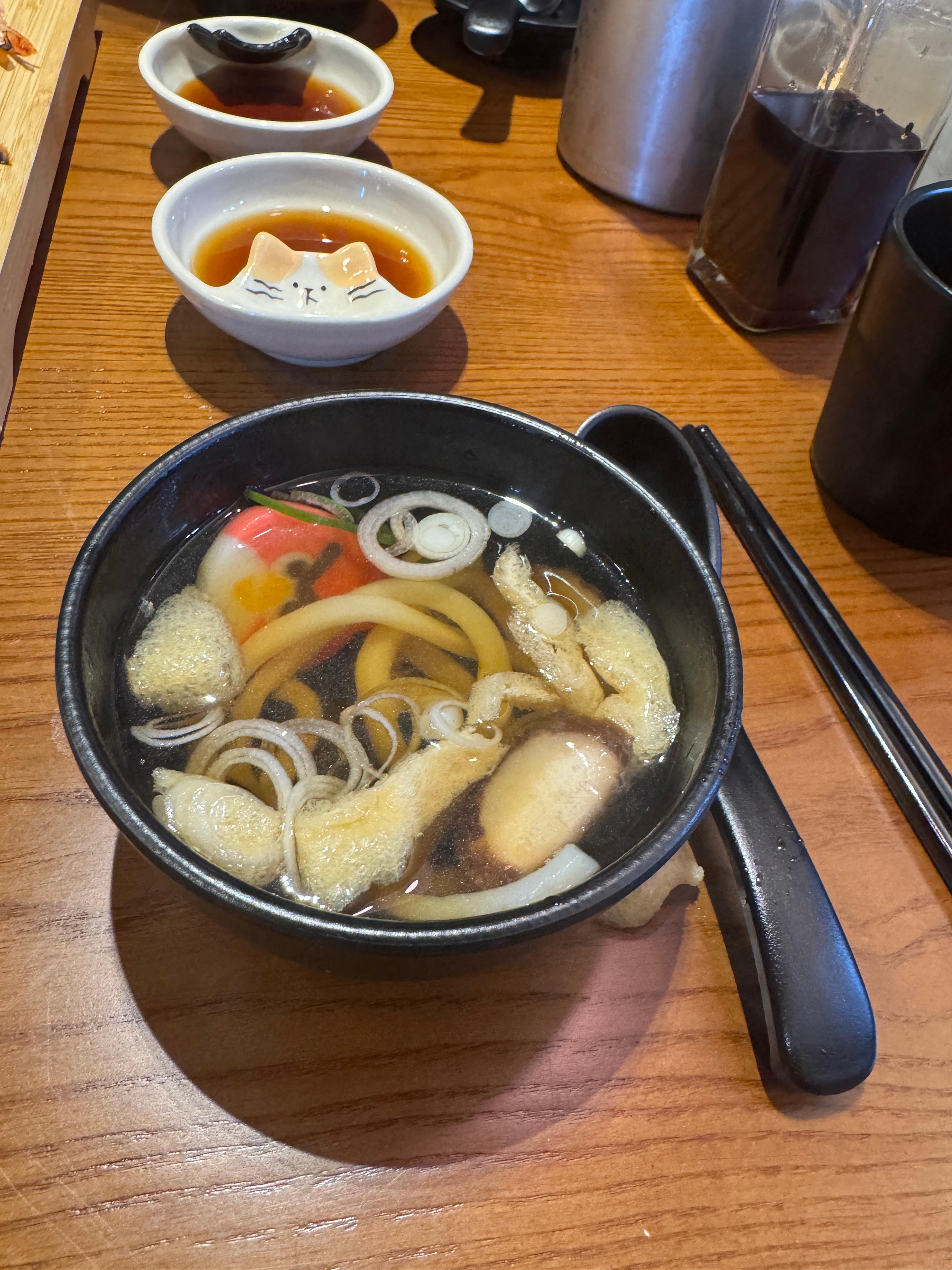 국물은 가쓰오부시 향이 깊게 배어 있었고, 짜지 않으면서도 깊은 감칠맛이 느껴졌습니다. 면발은 탱글하고 쫄깃해서 식사 전 입맛을 돋우는 데 제격이었어요.